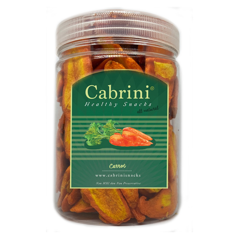 Cabrini Healthy Snacks adalah cemilan sehat yang diproduksi menggunakan bahan-bahan dari produsen lokal dan diolah dengan vacuum frying yaitu proses penggorengan dengan suhu rendah sehingga menghasilkan produk yang renyah, minim minyak, tanpa mengurangi nutrisi yang terkandung serta tanpa menggunakan zat pewarna, pengawet maupun MSG.