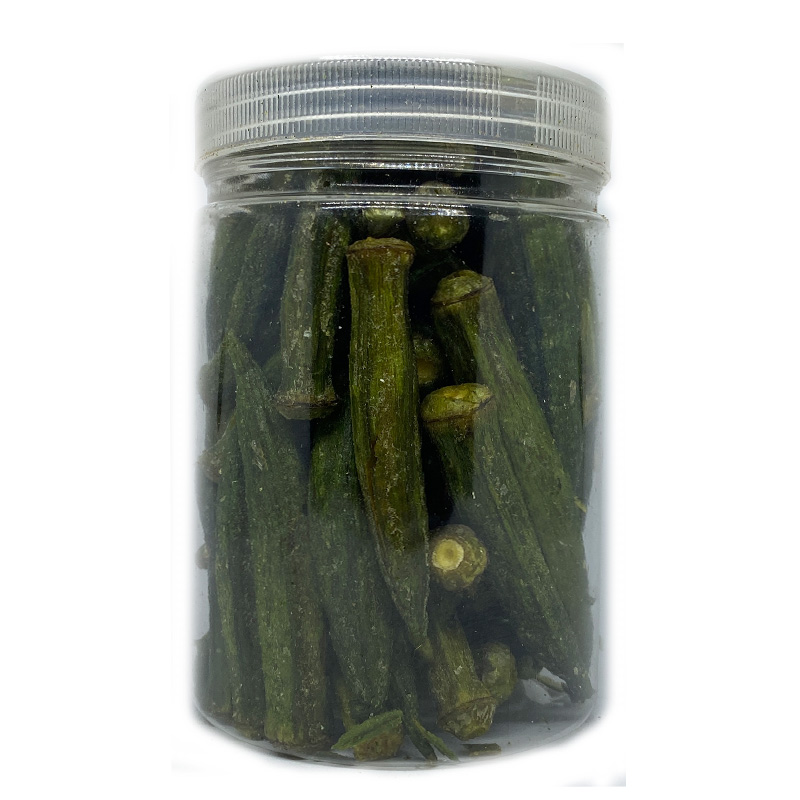 Cemilan sehat sayuran berserat tinggi berisikan khusus okra, tanaman yang dikenal kaya akan kandungan serat, vitamin, serta mineral yang baik untuk kesehatan tubuh.