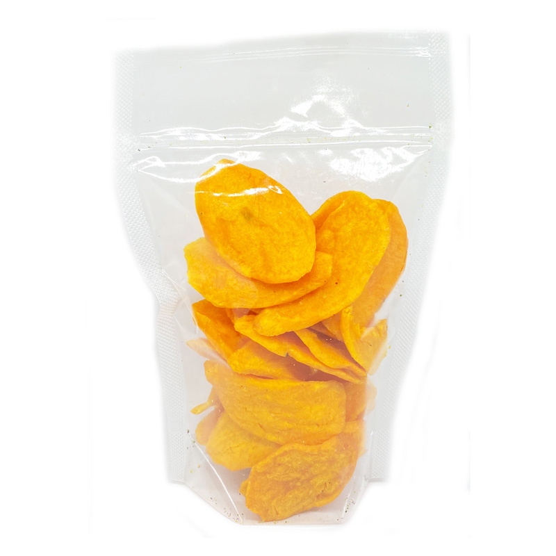 Cemilan sehat berserat tinggi berisikan khusus irisan lembar ubi kuning.