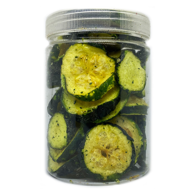 Cemilan sehat sayuran berserat tinggi berisikan khusus zukini, sayuran berkalori rendah jenis timun yang masih dalam keluarga labu-labuan.